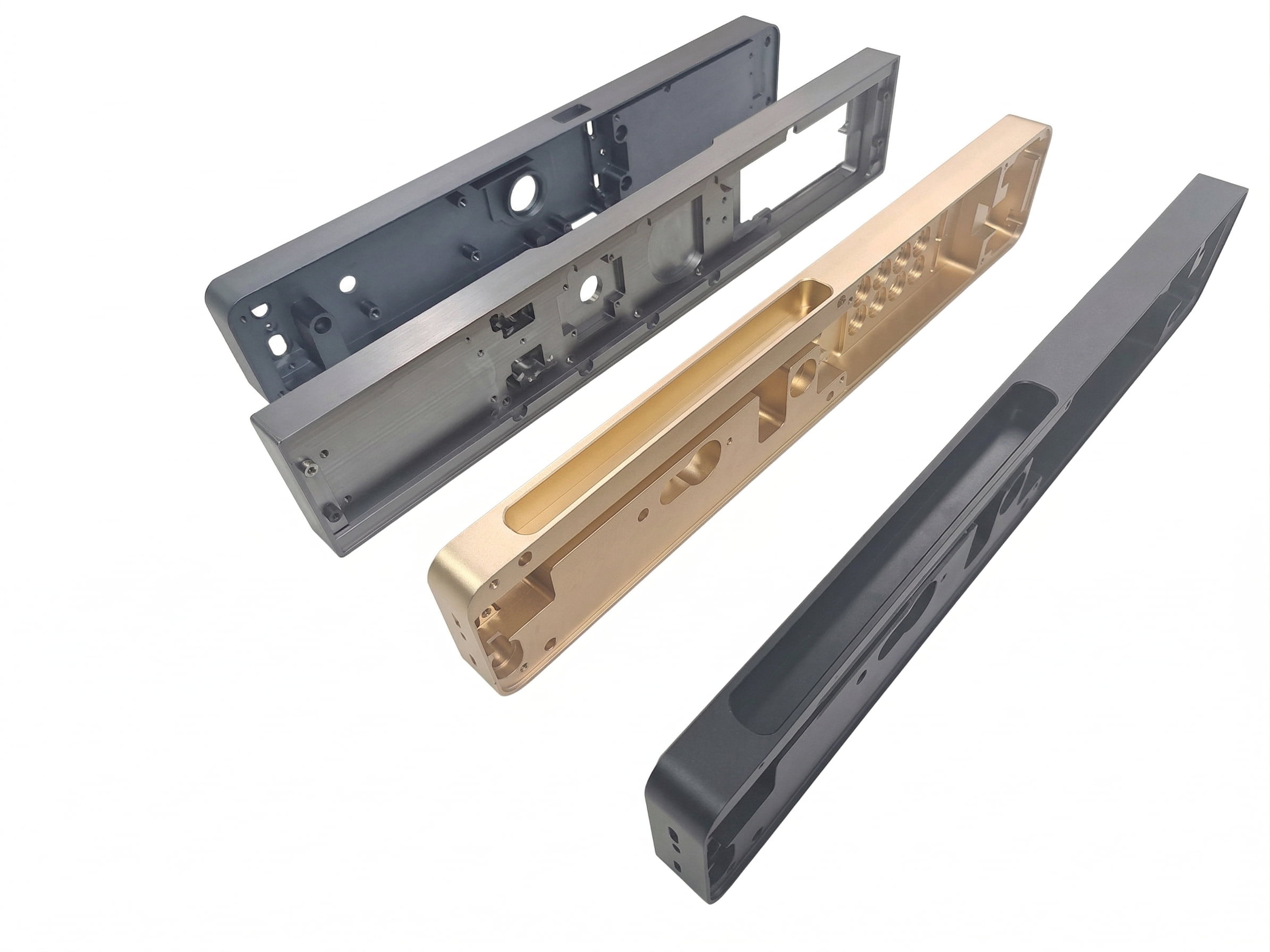 Anodizing, sandblasting, brushing, and powder coating options.